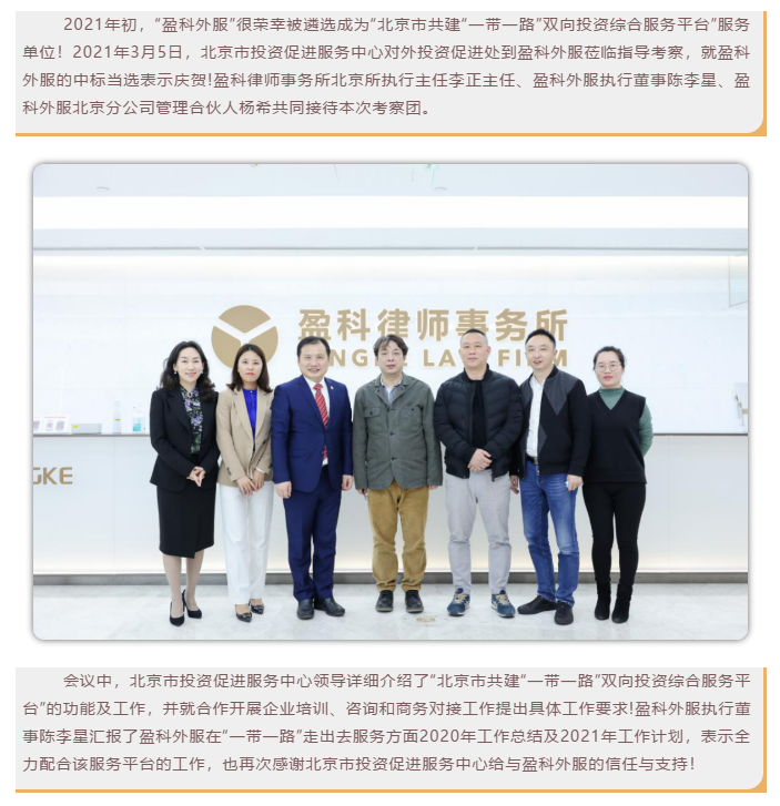 北京市商務局外經處莊建蓉處長一行蒞臨盈科外服考察