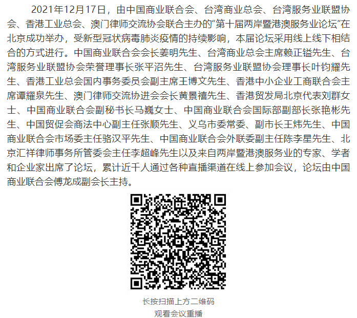 直播預告 — 第十屆兩岸暨港澳服務業論壇