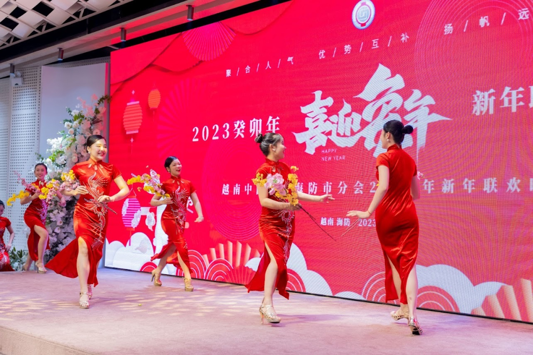 越南中國商會海防市分會李衛會長發表新年祝詞。李會長回顧了從2009年越南中國商會海防市分會成立至今,在中國駐越南大使館經濟商務參贊處和越南中國商會總會的指導下,經歷了有小到大的成長歷程,特別是在最近三年疫情期間,在中國國內和越南的疫情高峰期,海防市分會各成員單位體現出了凝聚力,組織了各種募捐活動,捐款捐物,為中越兩國的抗疫工作做出了很大貢獻。今天是三年疫情之后的再次相會,祝愿大家新年進步。