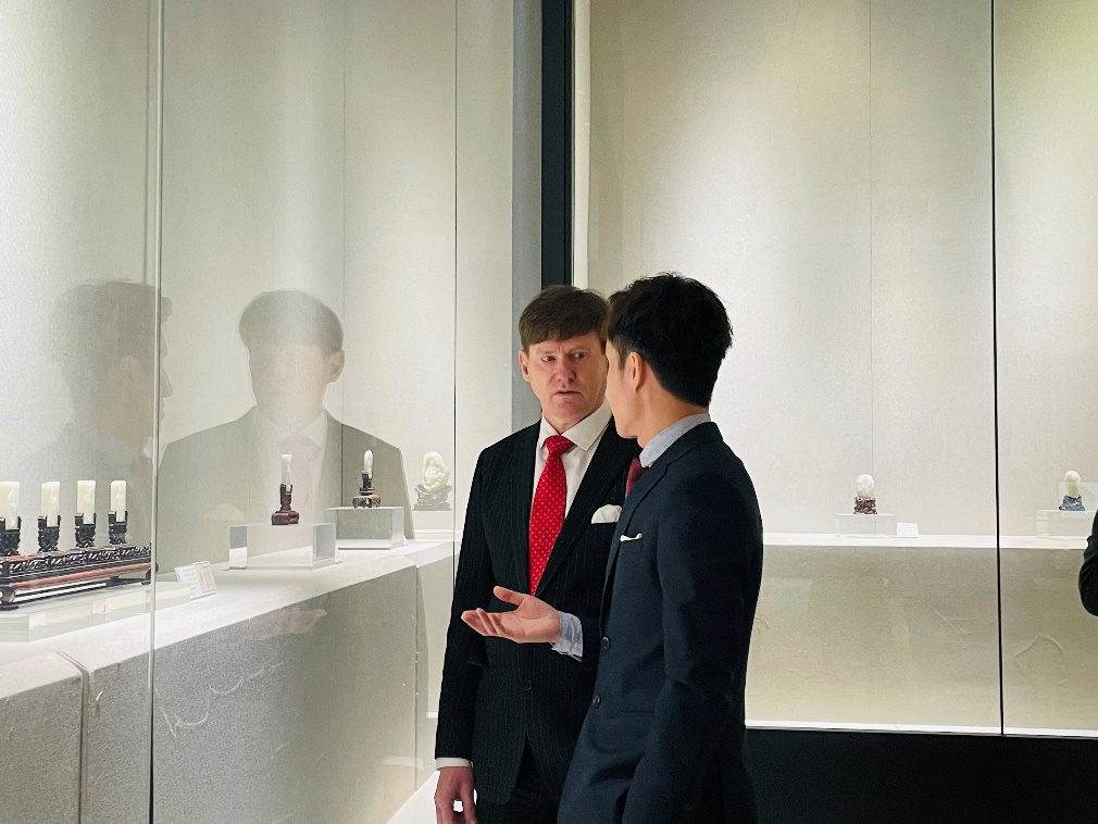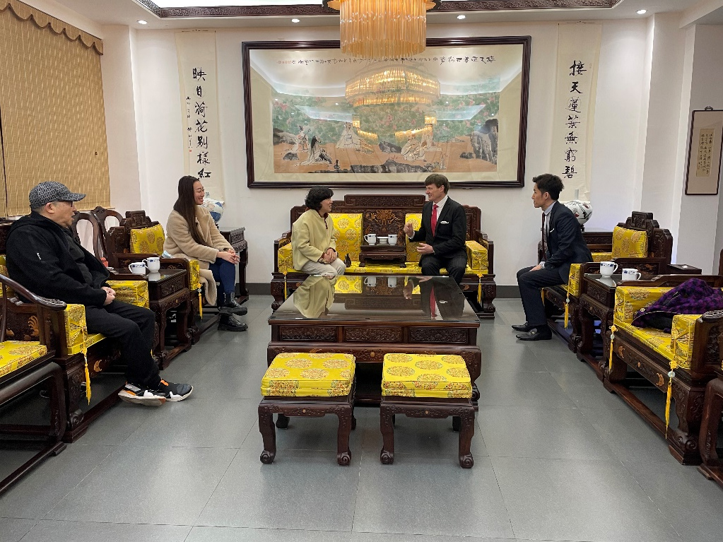 會前,寶山區張廟街道主任趙明玉女士與盈科外服團隊一起參觀了坐落于寶山區顧村鎮的龍現代藝術展。憑借藝術展中琳瑯滿目的書法、繪畫、雕塑、油畫、瓷器、紫砂、玉雕等藝術作品,以及充滿江南園林氣息的精致建筑,趙主任向盈科外服團隊展現了寶山區顧村鎮當前的文化建設及其對于文化產業發展的重視。