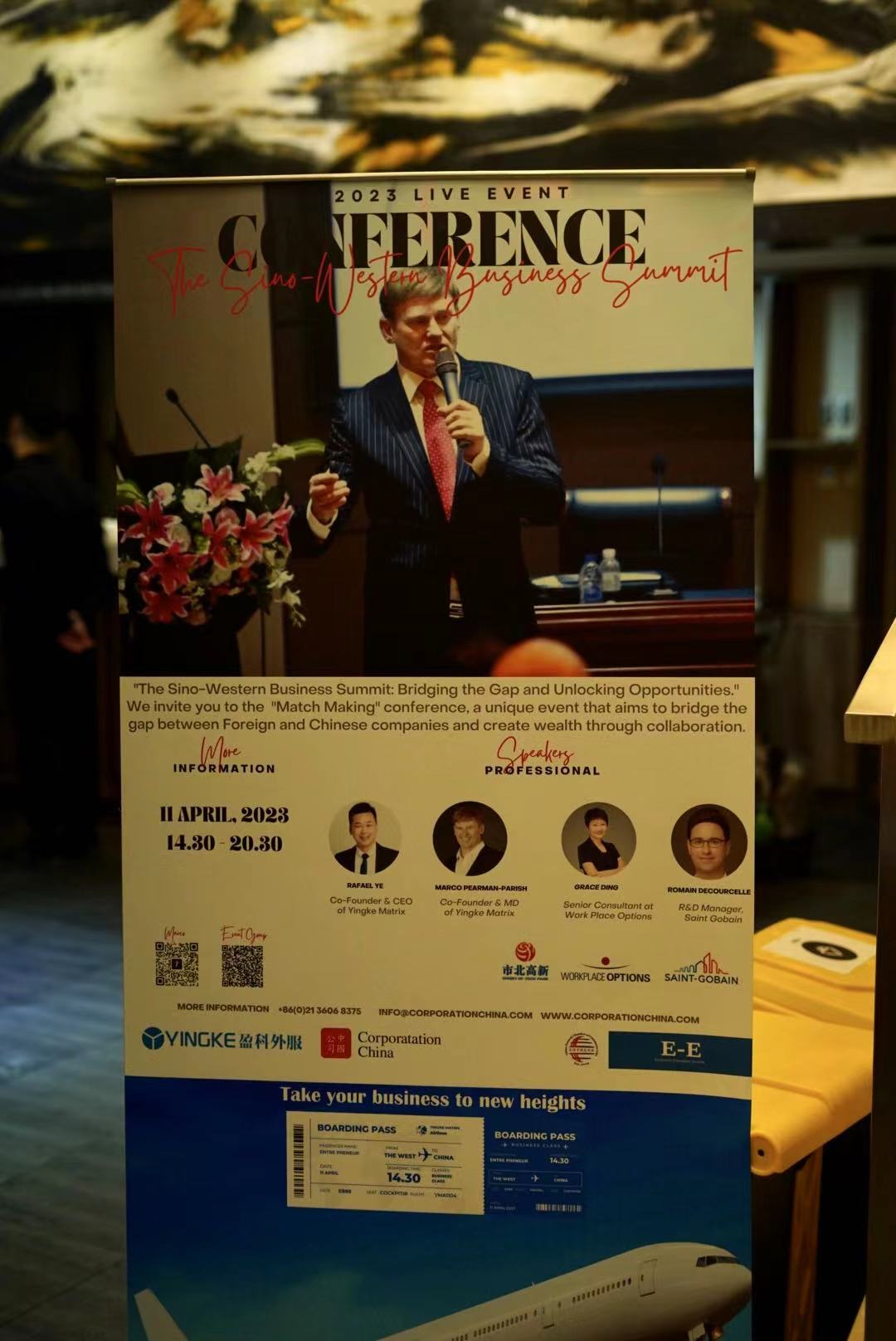 Attendance: Mr. Rafael, co-founder and president of Yingke Matrix,; Marco Parish, founder of Corporation China; Mr. Jean-Christophe Gaffier, founder of CorpoRank & EE Society; Mr. Liu Zizheng, president of Yuanfang Logistics Group; Mr. Mustafa Yesilgoes, CEO of Plastic Omnium; Mr. Romain Decourcelle, R&D Manager of Saint Gobain China; Mr. Pierre Buxeda, CEO of Aldes China; Mr. Zhang Lingman, Chairman of SINOWAY Holding Group; Mr. Wang Xiaofeng, Management Committee of Yingke (Shanghai) Law Firm director; Ms. Weihong Ding, senior EAP of WorkPlace Option; Mr. Tomas Kucera, representative of the Czech Chamber of Commerce; Mr. Aalireza Ramezani, chairman of the Iran Chamber of Commerce, and other related foreign entrepreneurs and well-known domestic entrepreneurs, totaling about 30 entrepreneurs have attended the summit.
