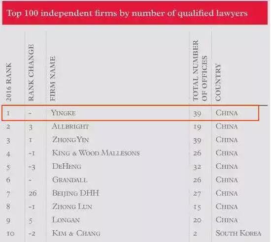 導讀:近日,英國著名法律雜志《The lawyer》公布了“2017亞太地區100強律所”榜單,盈科律師事務所再次蟬聯亞太地區規模最大的律師事務所。截止到2017年7月6日,盈科律師事務所大陸地區執業律師總人數達到5075人,分所增至42家。