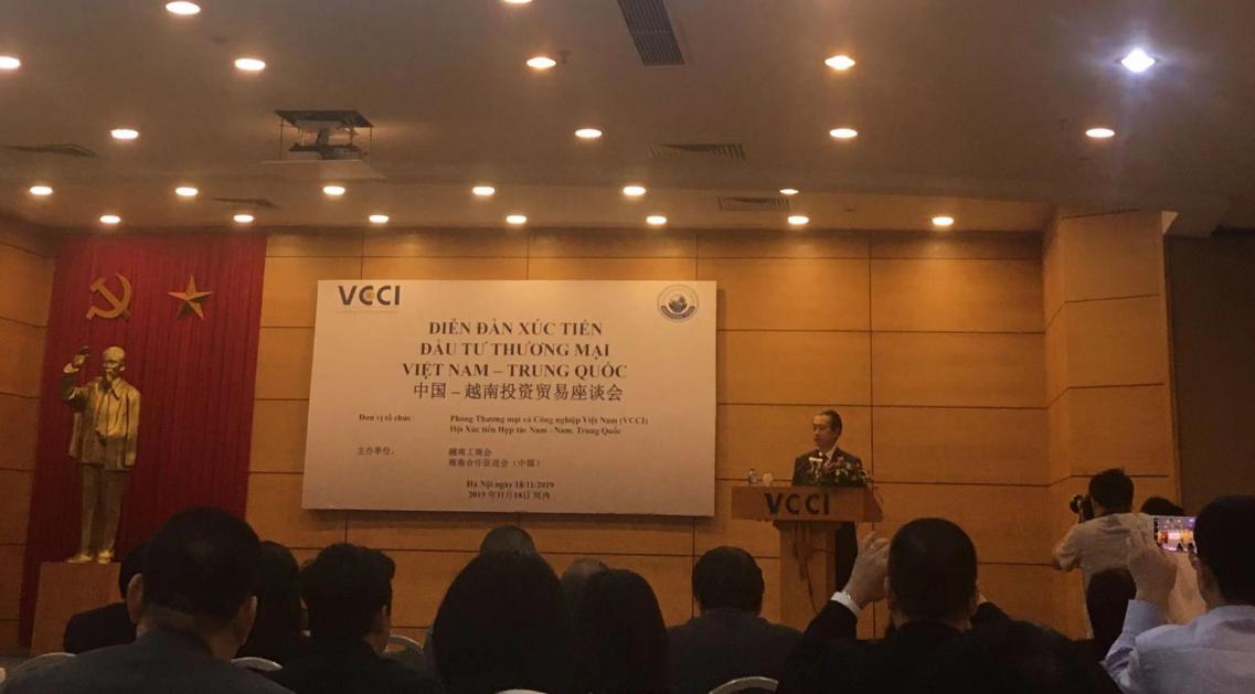 2019年11月18日上午,由越南工商會(VCCI)、南南合作促進會(中國)聯合主辦的“中國-越南投資貿易座談會”在越南河內成功召開。