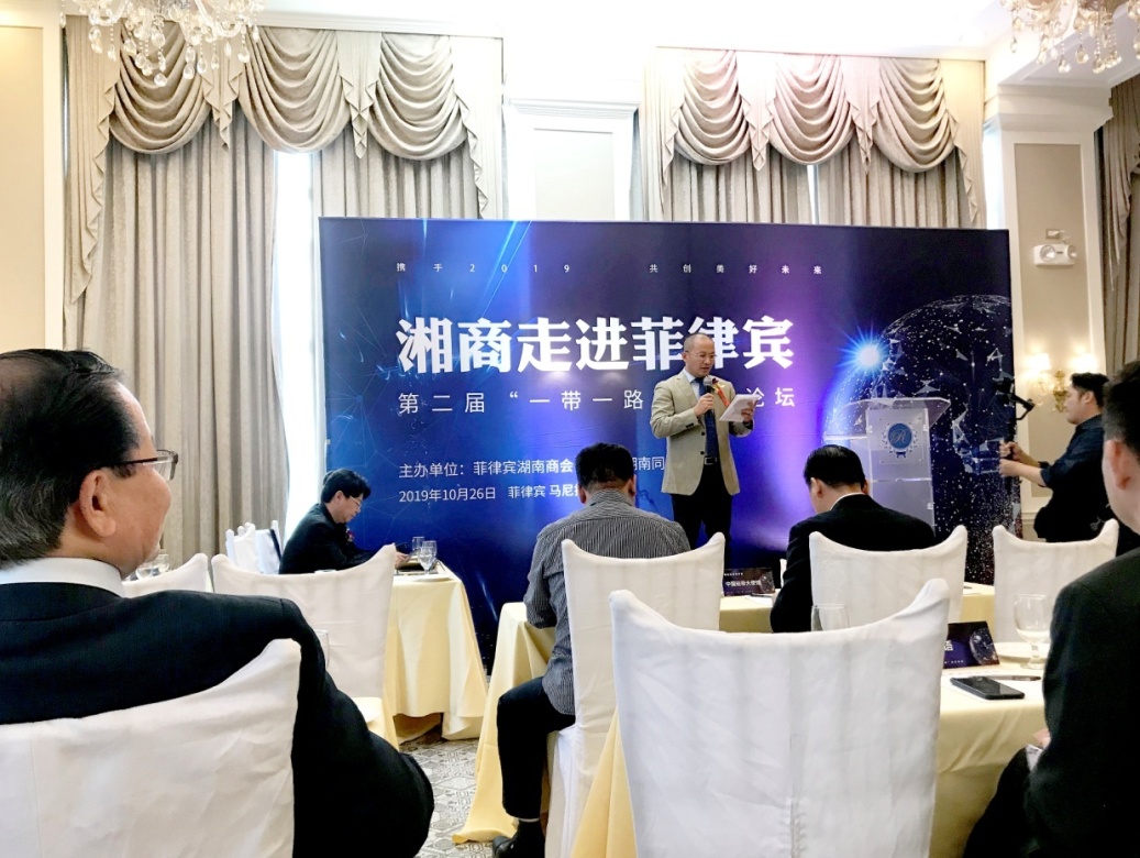 2019年10月26日下午2點,《湘商走進菲律賓》“一帶一路”第二屆經貿論壇由主辦單位菲律賓湖南商會暨菲律賓湖南同鄉會(以下簡稱“商會”)在馬尼拉黎剎公園酒店隆重舉行。